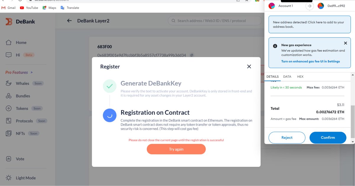 create a Debank layer2 and create a password for it, verify and confirm transactions in the wallet, and you are good.