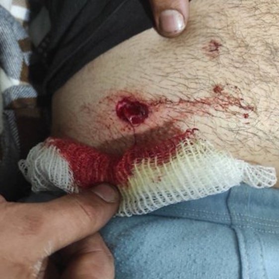 Rana, 20, says she was chanting slogans during a recent protest rally. A police commander said come over and talk. When she walked over, he shot at her with a pellet gun at 2 meters.