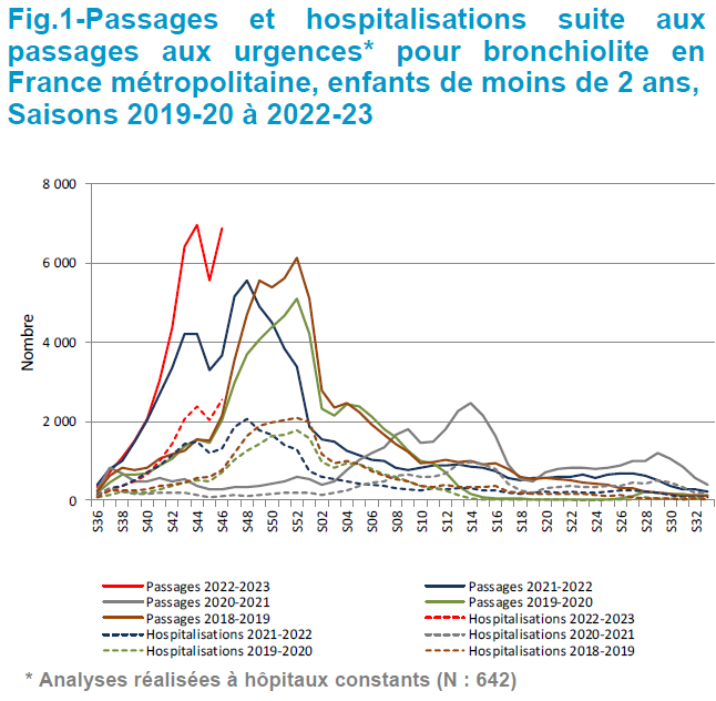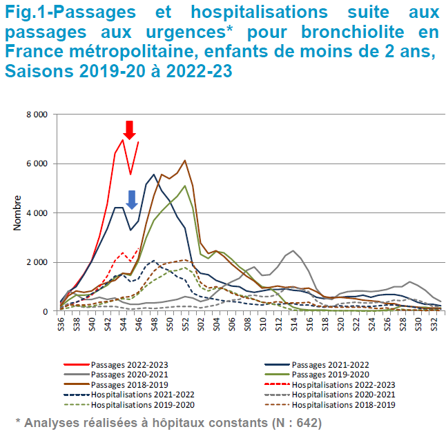 En attendant des données plus détaillées dans les bulletins bronchiolites de SPF, outre les données étrangères, on peut interroger les pédiatres, les collègues virologues...