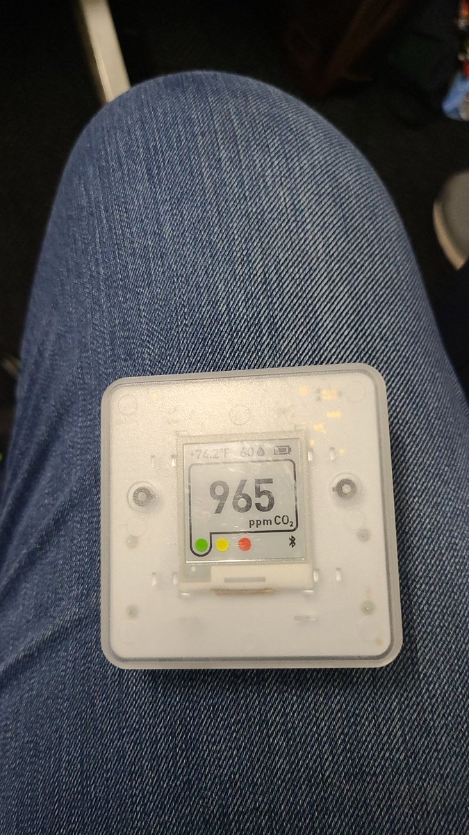 I am asked about travel a lot. I have flown across the US and to/from Europe and not caught COVID or any respiratory bug. I carry my CO2 sensor to determine where to sit in airports. Lounges are typically poorly ventilated and everyone is eating/drinking with no mask. (1/3)