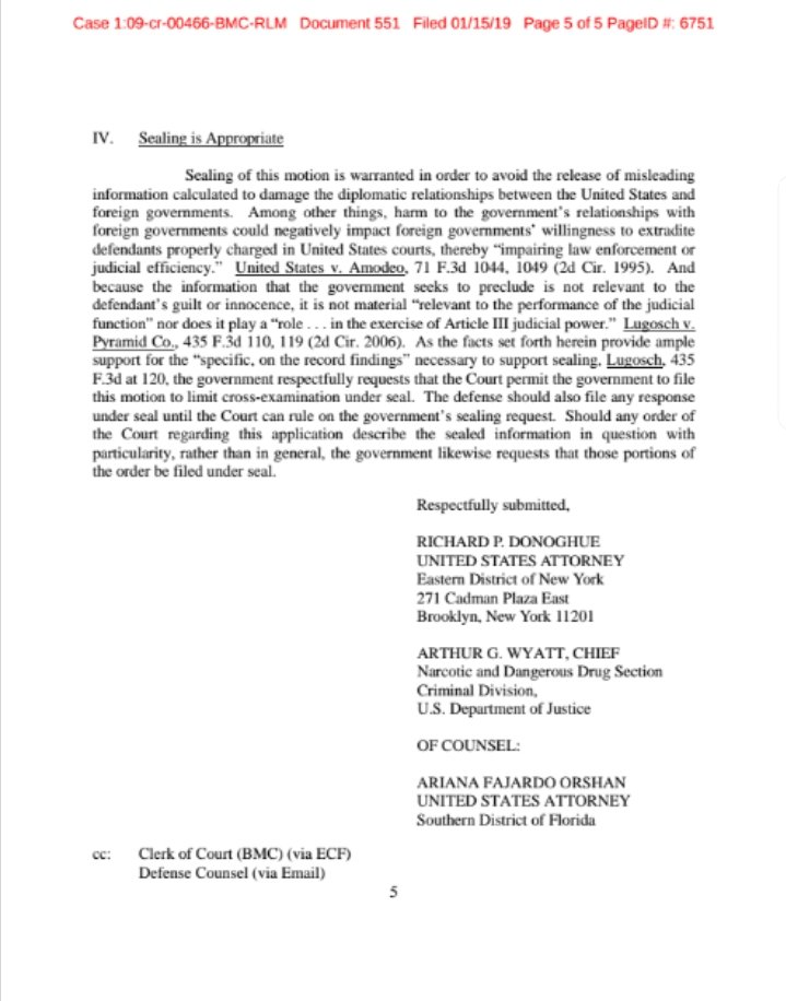 El gobierno volvió a pedir al juez que bloqueara el testimonio sobre corrupción de alto nivel, pero Cogan rechazó la solicitud el miércoles y ordenó que se revelara la moción de los fiscales.