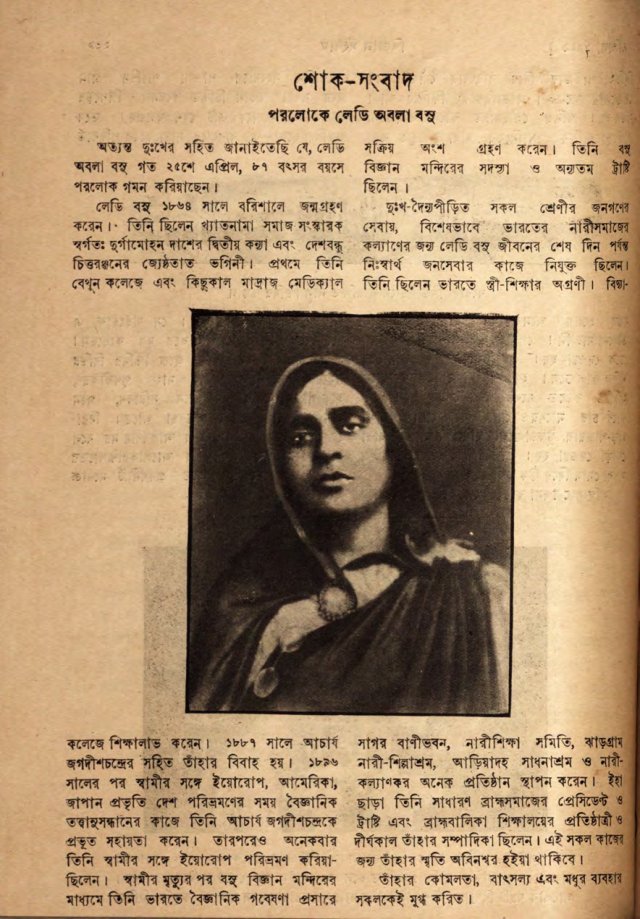 The first editor of the magazine was Banalata Devi. After her short but eventful life came to an abrupt end in 1900 the mantle was taken over by Hemanta Kumari Devi and later on Kumudini Mitra of Mary Carpenter fame.