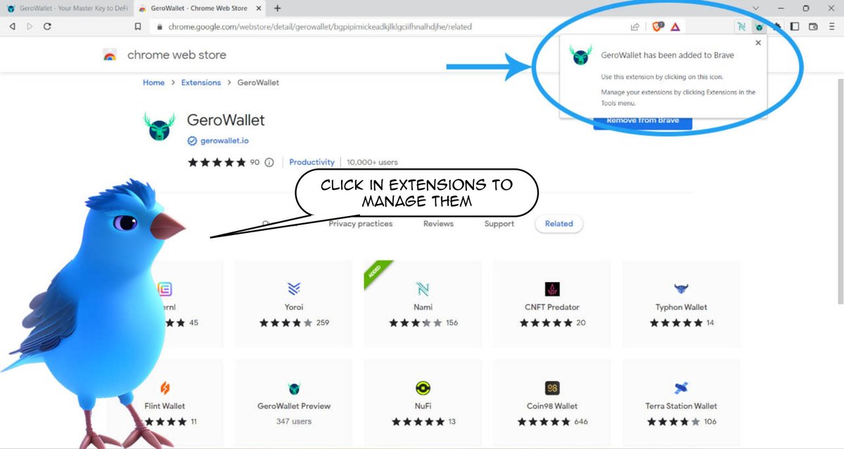 First, navigate to 'gerowallet.io' and click on the button 'Download'. It will redirect you to the extension of it in the Chrome Web Store. Then click on the button 'Add'.