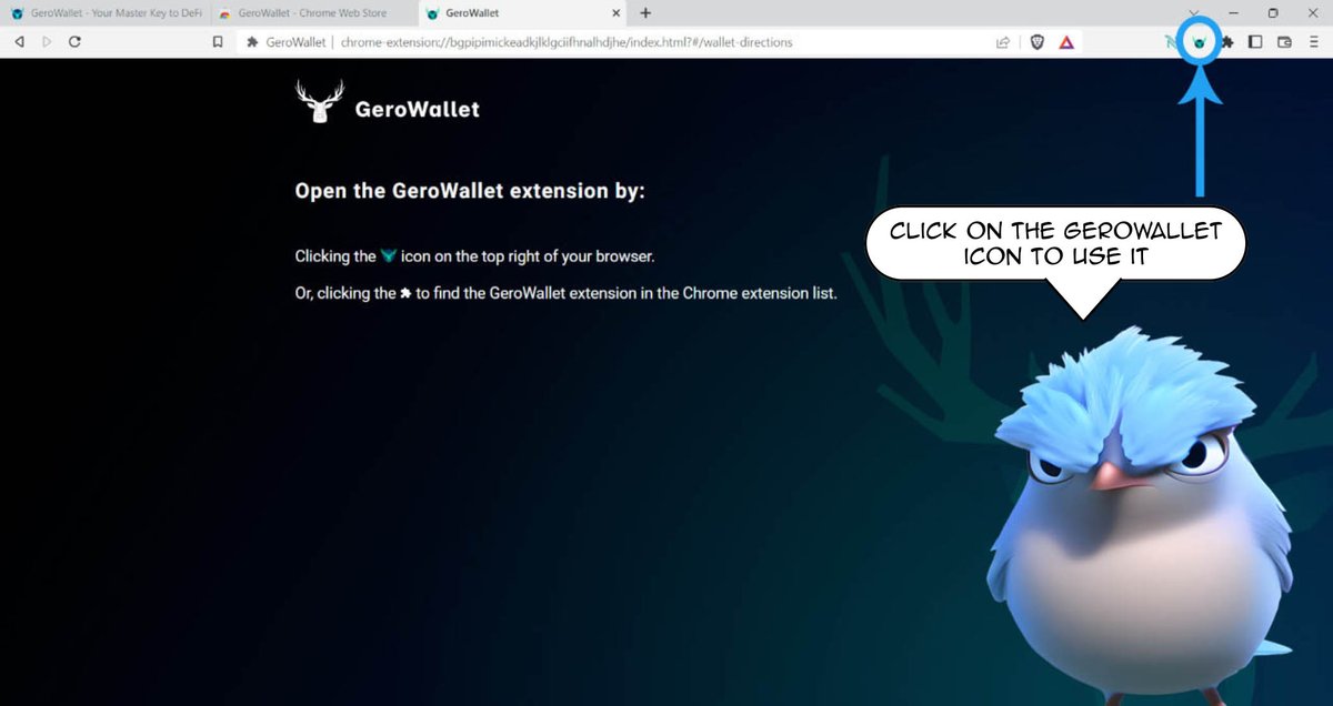To open it, click on the @GeroWallet extension button that you intitially clicked before restoring it.