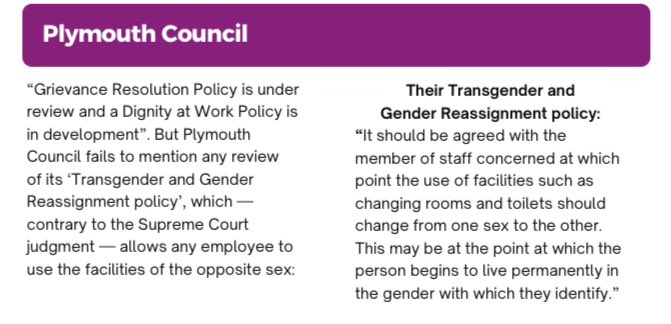 Plymouth are telling their own female staff they don’t matter, and that men can access their spaces. The message this sends to the wider female public is that their rights are also dispensable.