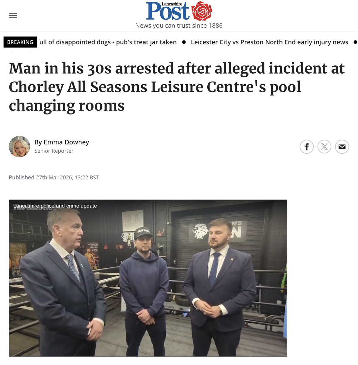 In Chorley, Lancs, a man in his 30s was arrested after an incident in the mixed-sex changing rooms at All Seasons Leisure Centre… 🚩 2/7