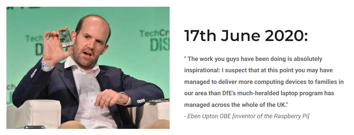 In the 2020/2021 academic year we distributed more computers to the schools of Cambridgeshire than the Department for Education. In fact the inventor of the Raspberry Pi computer, Eben Upton said this: 23/28