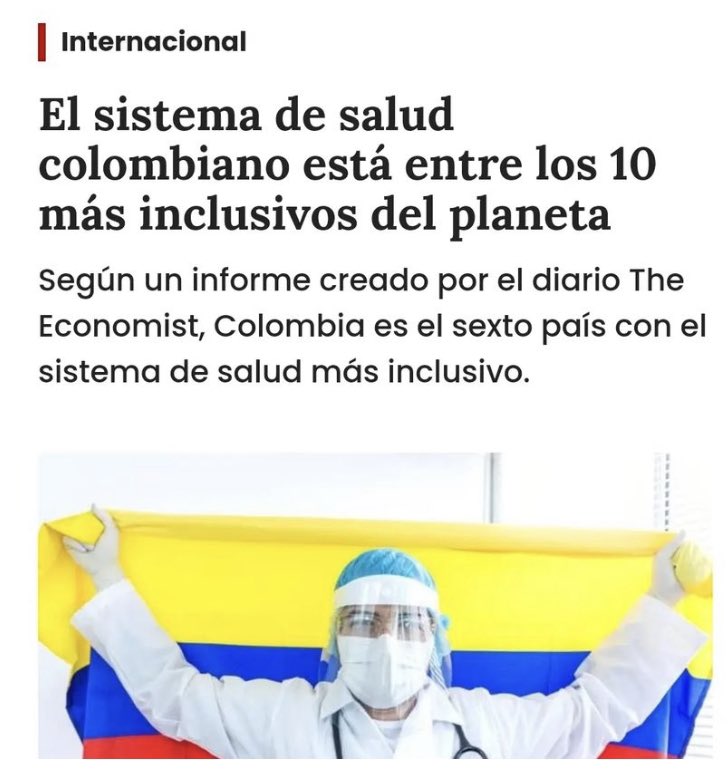 La revista @TheEconomist , reconocida por su seriedad y objetividad, califica el sistema de salud colombiano como el 6º más incluyente del mundo. Pero eso no basta a los hampones comunistas de ultra izquierda que van por el botín de la salud!