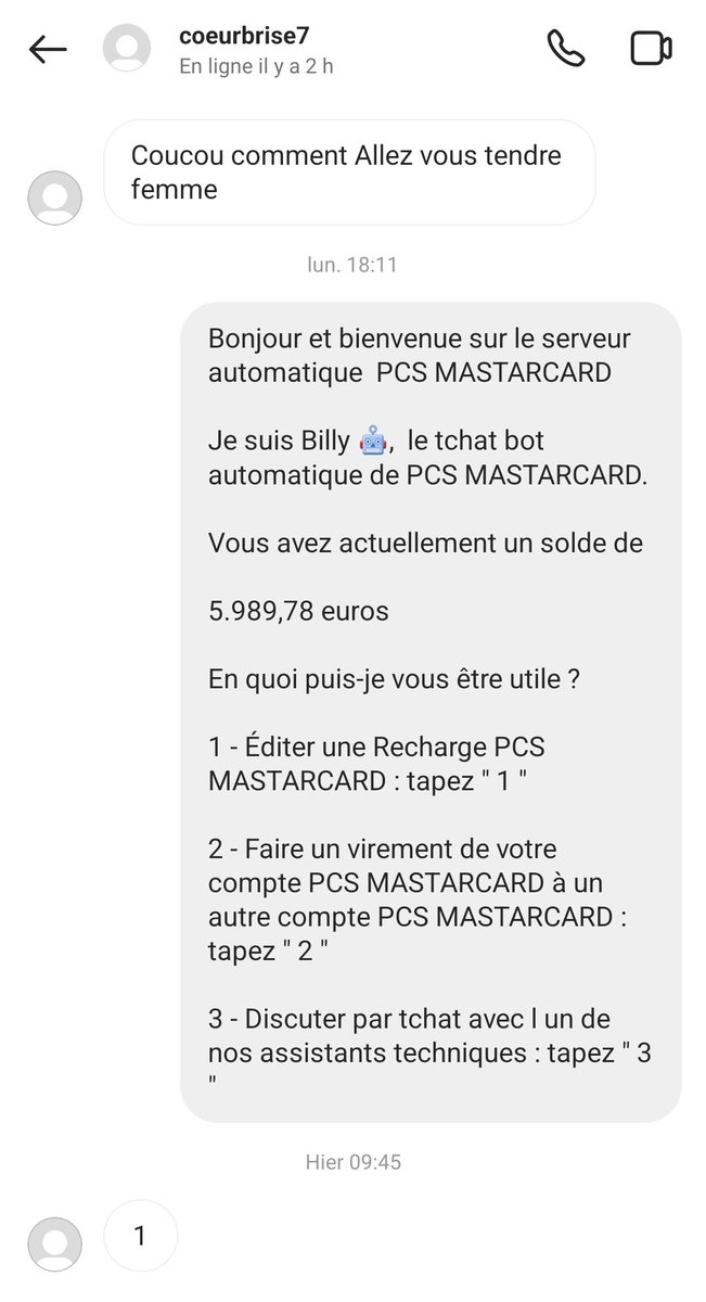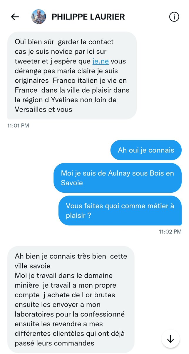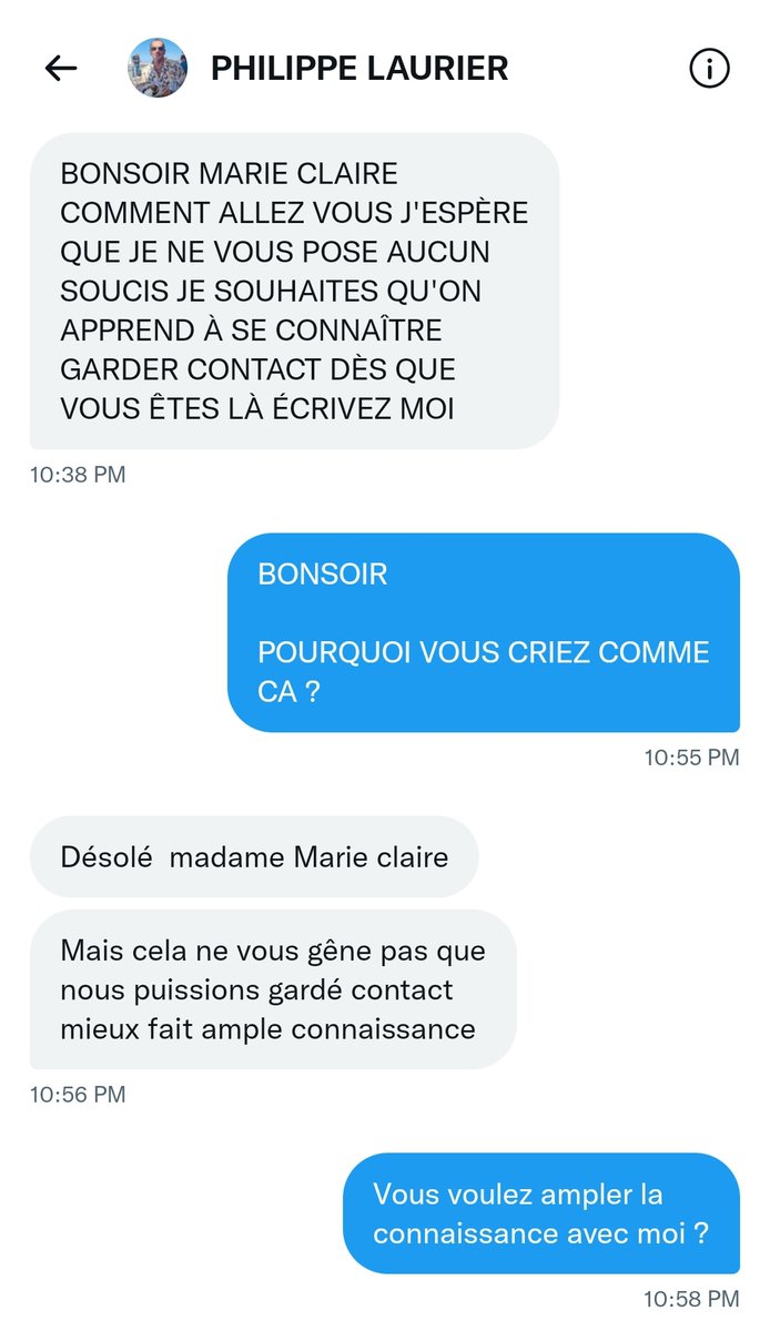 Au début je joue la proie potentielle. L escroc commence son baratin habituel pour faire connaissance.