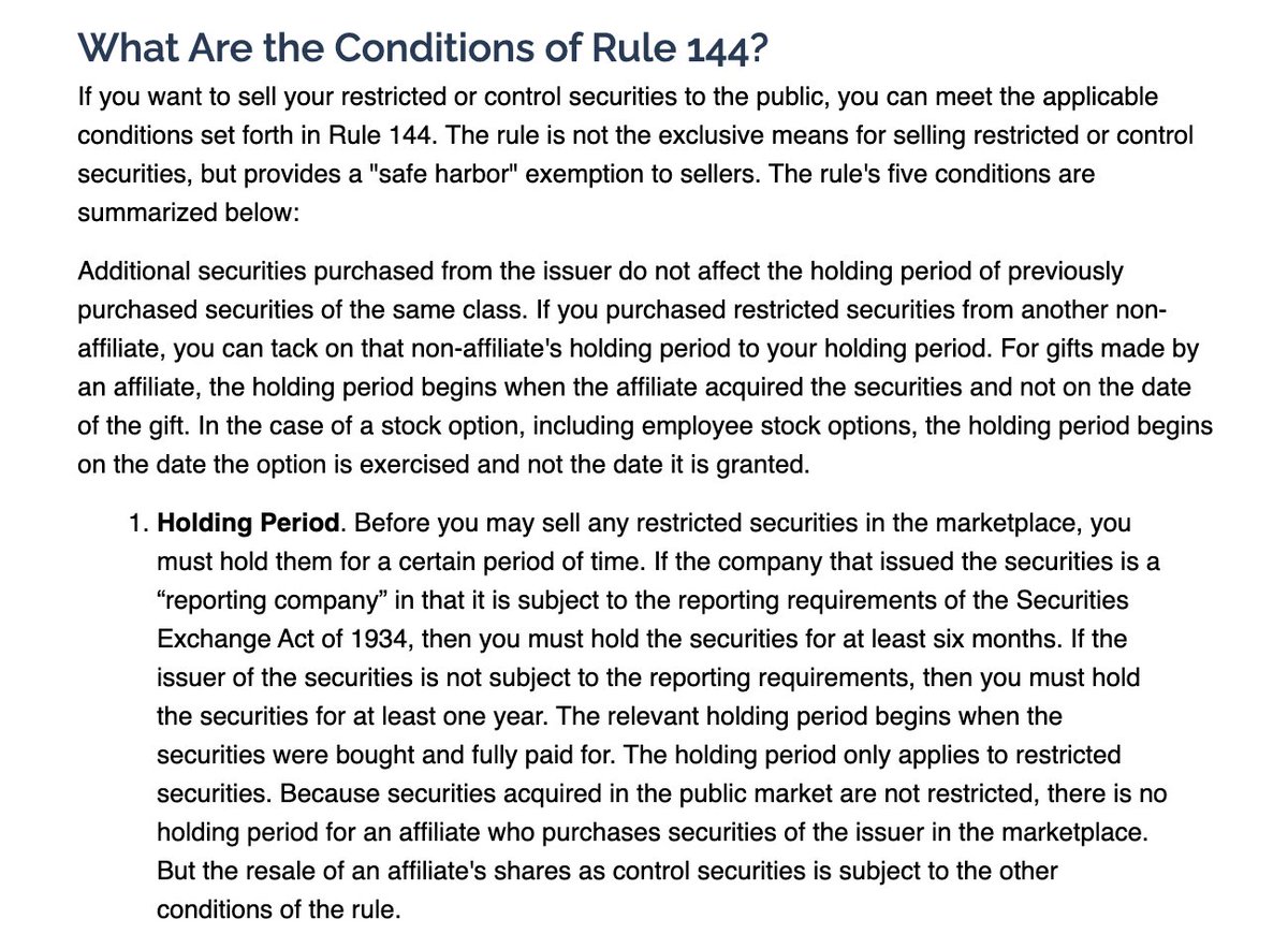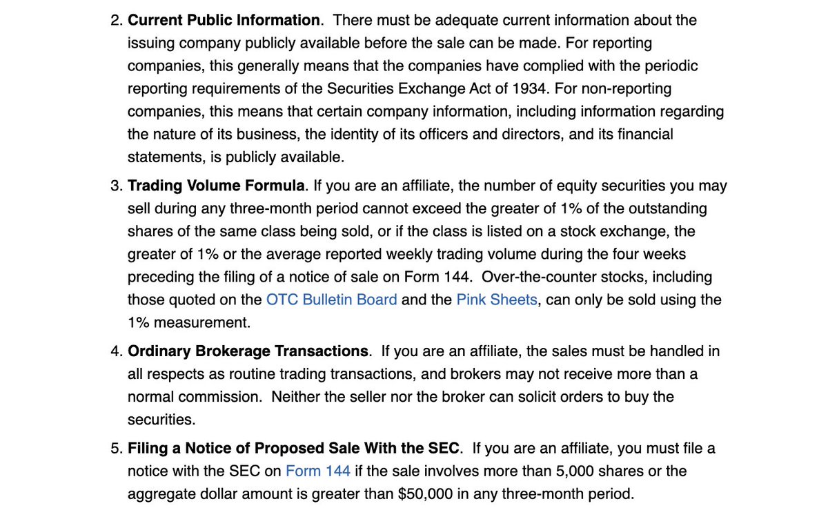 + Cap on sales of 1% of outstanding shares or weekly trading volume.