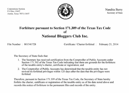 Problem is @ali never applied for legal non-profit status, and the State of Texas seized control of the business license in 2014.