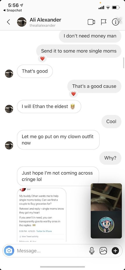 GNN believes this comes from this screenshot of what is a 17 year old showing messages with @ali, where the 17 year old is declining money in exchange for shirtless pictures.