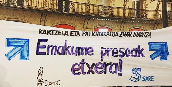 En Bilbao, aprovechando el Día Internacional de la Eliminación de la Violencia contra la Mujer, hicieron otra manifestación para exigir la excarcelación de las etarras presas: "Cárcel y patriarcado. Doble castigo. Las mujeres presas a casa!", pone en la pancarta.