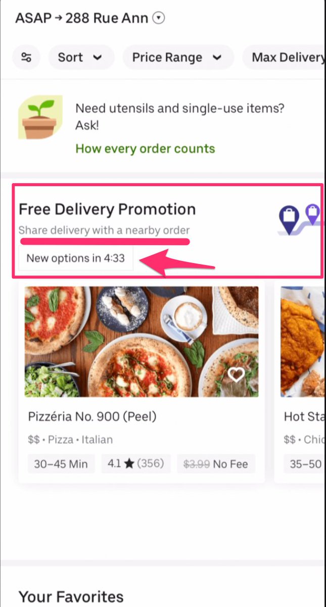 Uber Eats found the right angle: using a real limited resource (timing of deliveries), they are convincing new users to share the same restaurants as past users.