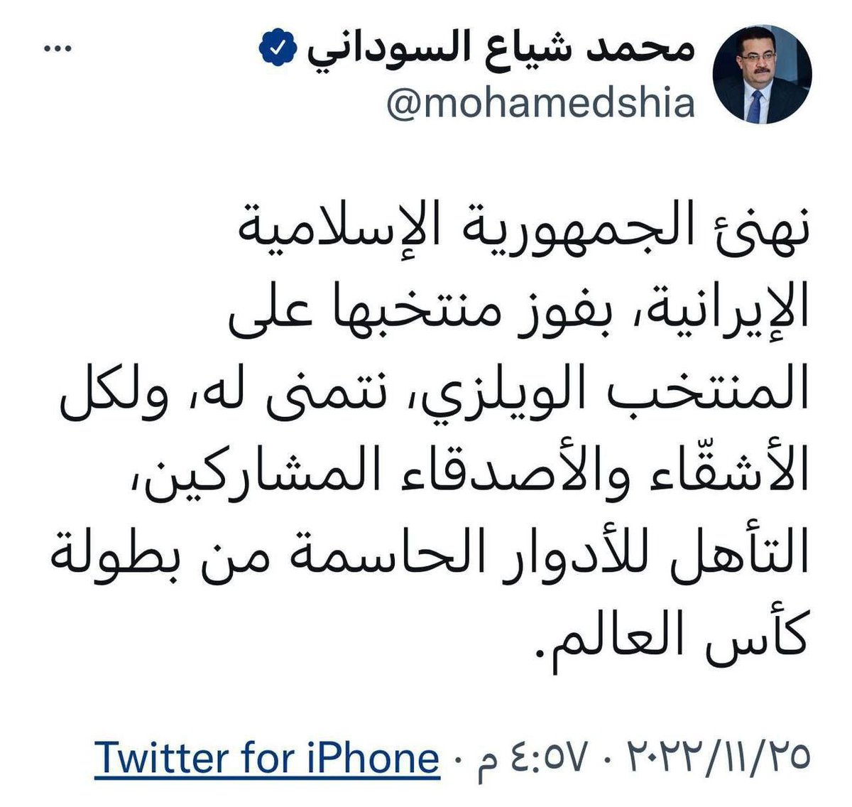 سومین تصویر، پیام تبریک نخست وزیر عراق است.