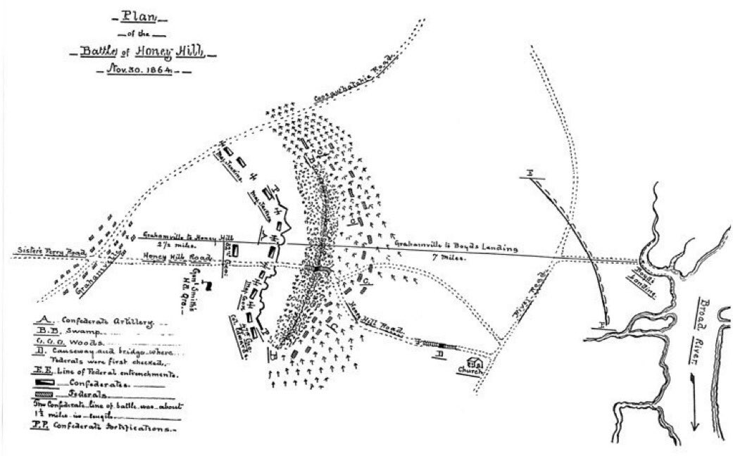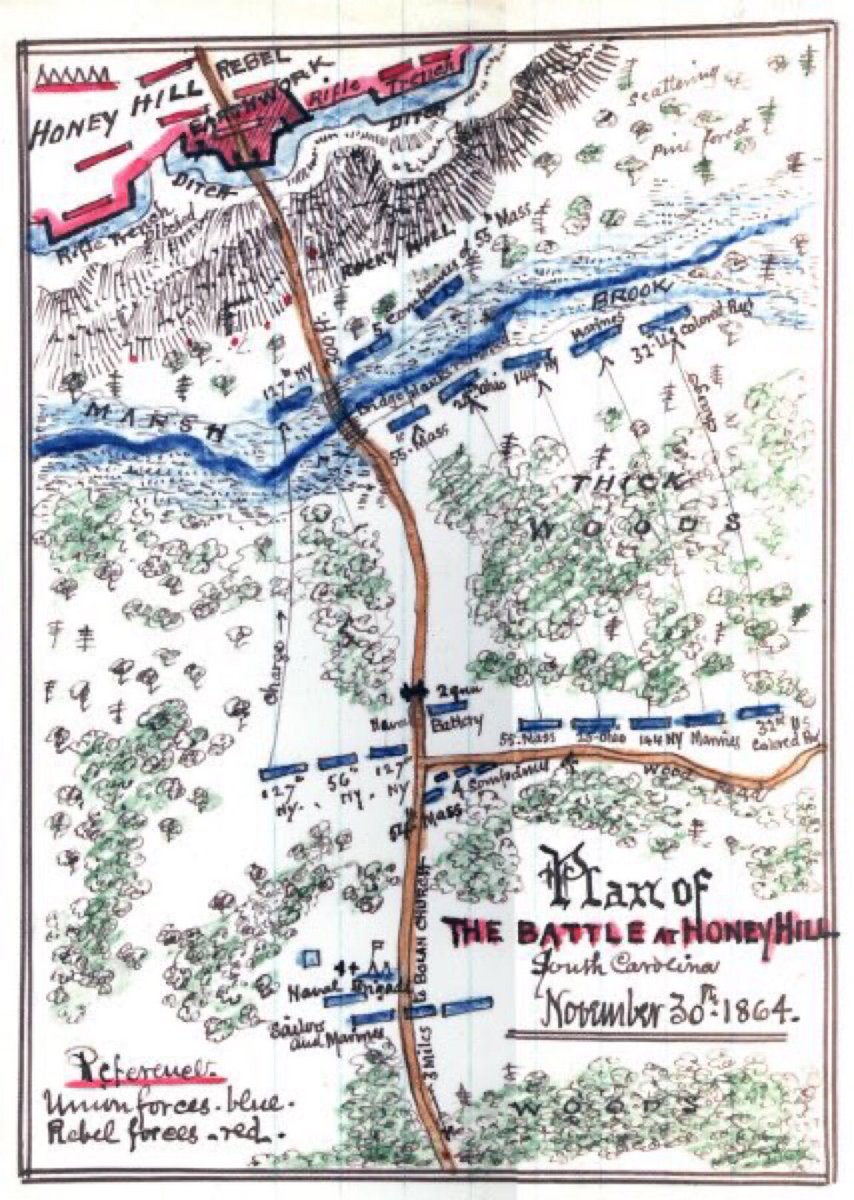 The Battle of Honey Hill was fought #OTD in 1864. It was part of an expedition along the coast to cut the Charleston & Savannah Railroad in support of General William Sherman's March To The Sea. #CivilWar 🧵