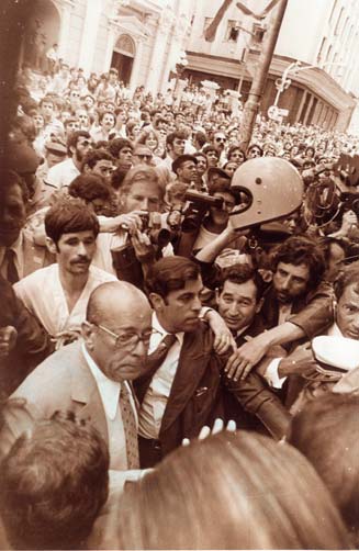 A guarda presidencial passou a insultar e agredir os manifestantes, dando início a um grande tumulto. As autoridades mobilizaram então Polícia Militar para debelar o protesto. Os manifestantes foram reprimidos com grande violência e muitas pessoas ficaram feridas.