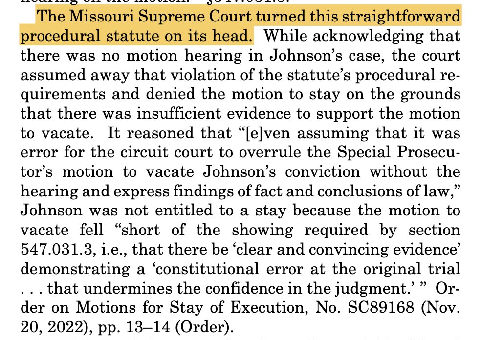 Missouri officials want to kill Kevin Johnson tomorrow — despite a special prosecutor finding that racism affected the prosecution & sentencing. He and Johnson are seeking a stay of execution from the Missouri Supreme Court. Arguments were today. Law Dork: lawdork.com/p/missouri-wan…