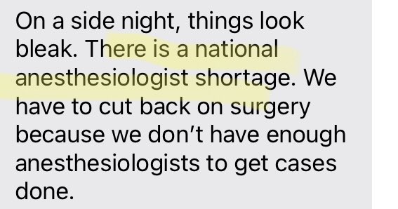 A different HCW from a major hospital in another state: “There is a national anesthesiologist shortage.”