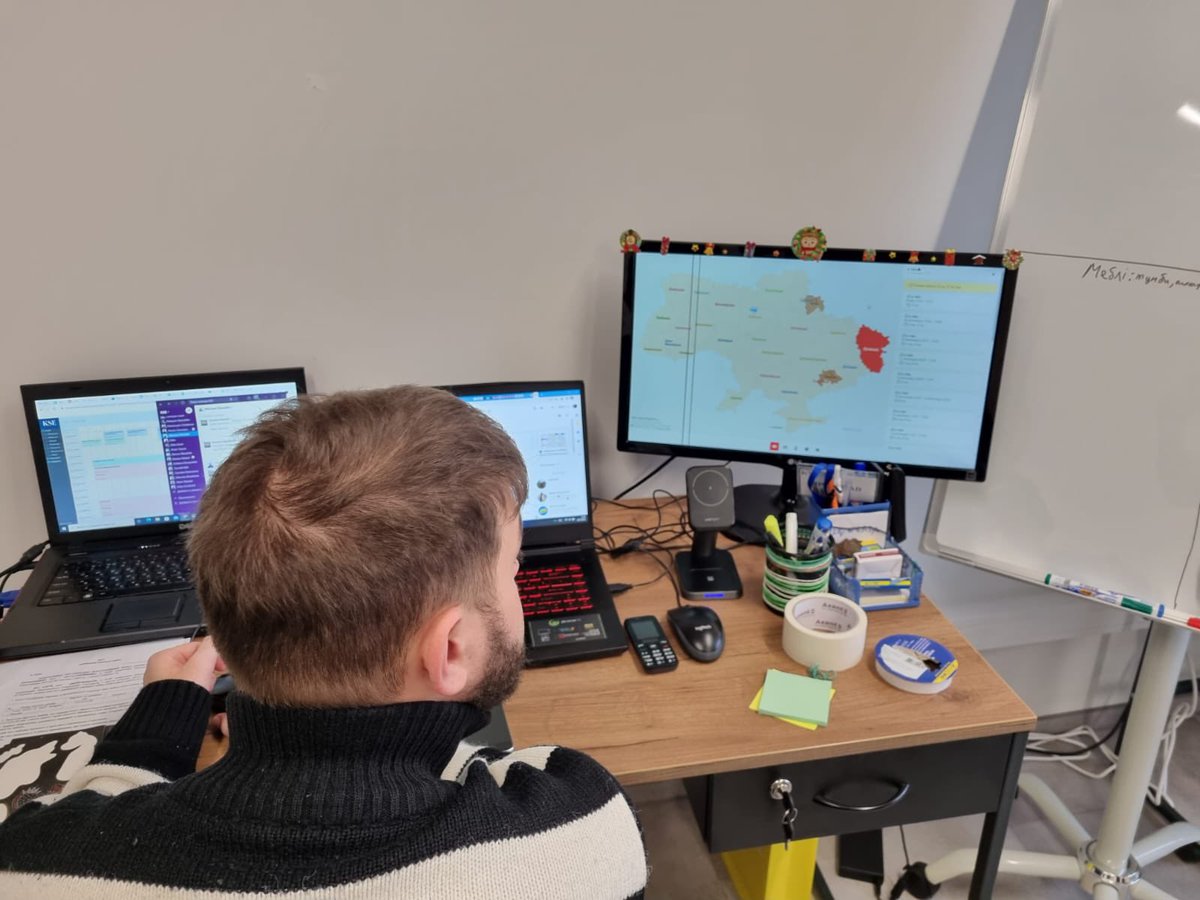 Now, back to Kyiv and our university. This is Yaroslav. He runs operations. He also monitors the map of the air attacks (on the right screen). So we can issue early warnings and move students and colleagues to shelters. 3/