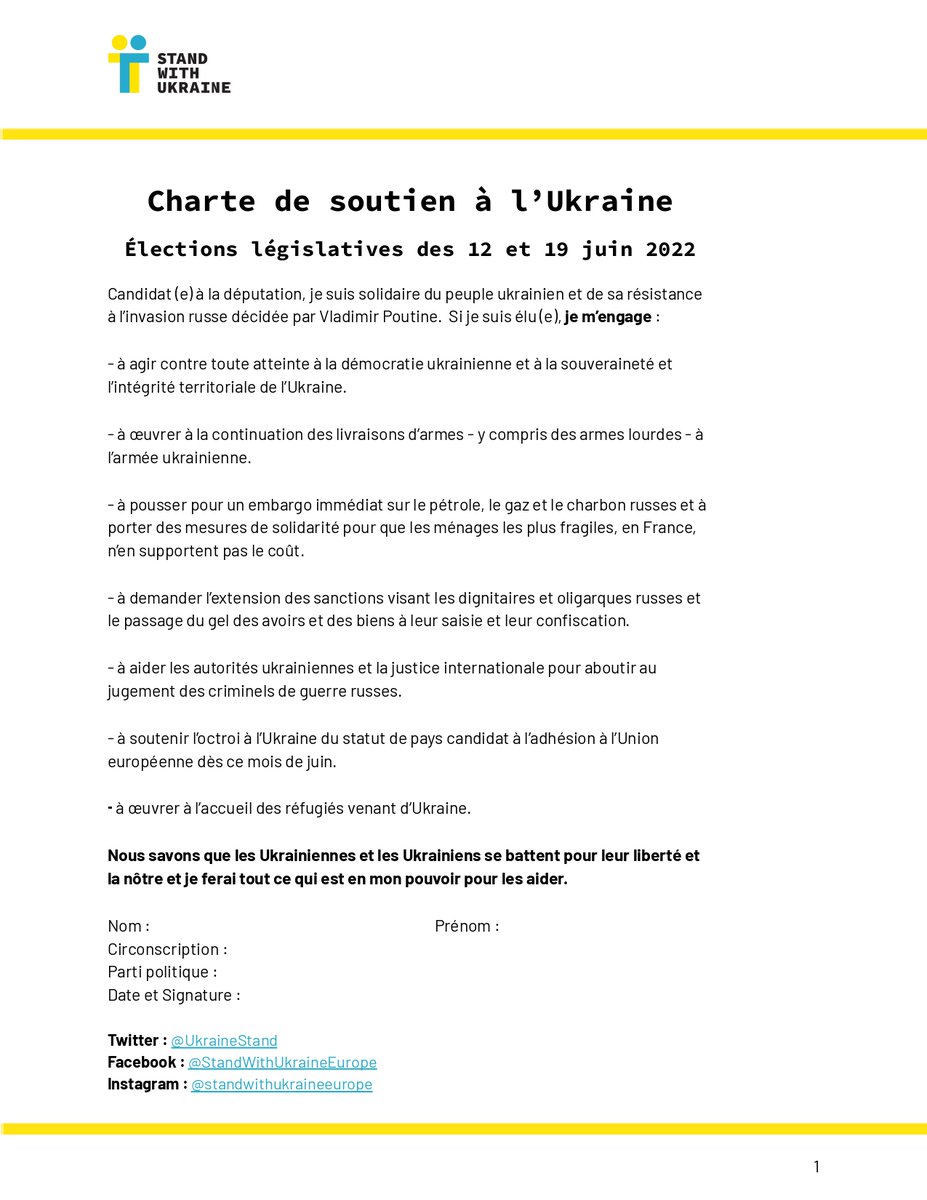Ce texte rejoint les points clés de notre Charte de Soutien à l'🇺🇦, proposée aux candidats pour signature au printemps dernier et approuvée par plusieurs dizaines de députés: financier, militaire, humanitaire, stop à l'énergie russe, l'🇺🇦 dans l'UE et la 🇷🇺 jugée pour ses crimes.