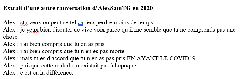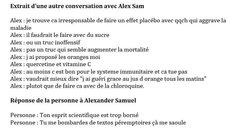 @conspiration @AlexSamTG 1⃣6⃣Enquête @conspiration et Fact&Furious Autre échange entre @AlexSamTG et une personne, voyez plutôt le niveau - morceaux choisis