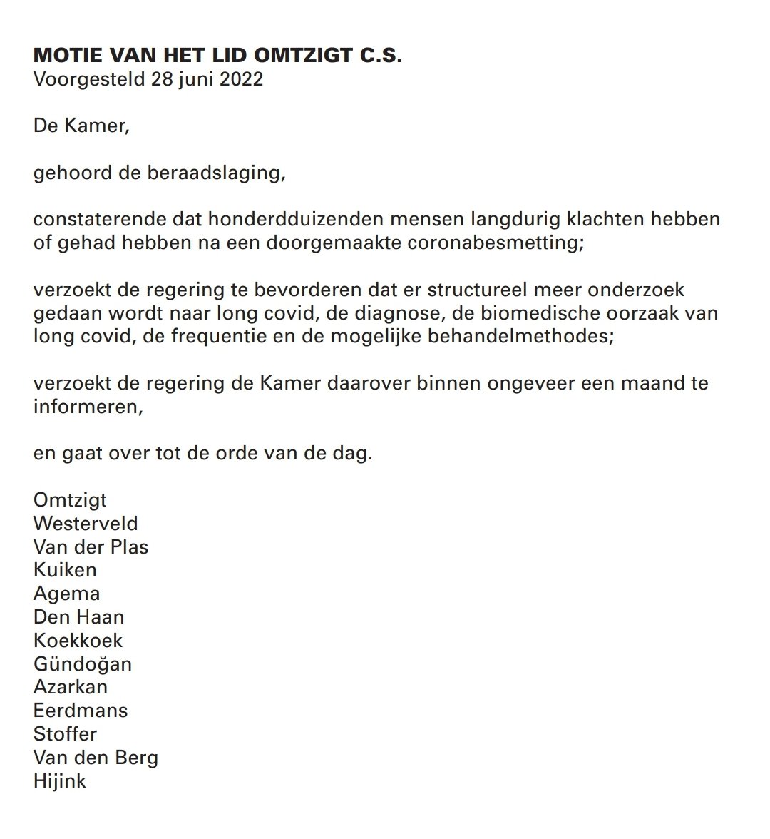 Ik wil @Lisawesterveld en haar collega's op het hart drukken: jullie hebben in juli een motie aangenomen die het kabinet vraagt aantallen Long Covid patiënten te onderzoeken! 2/3