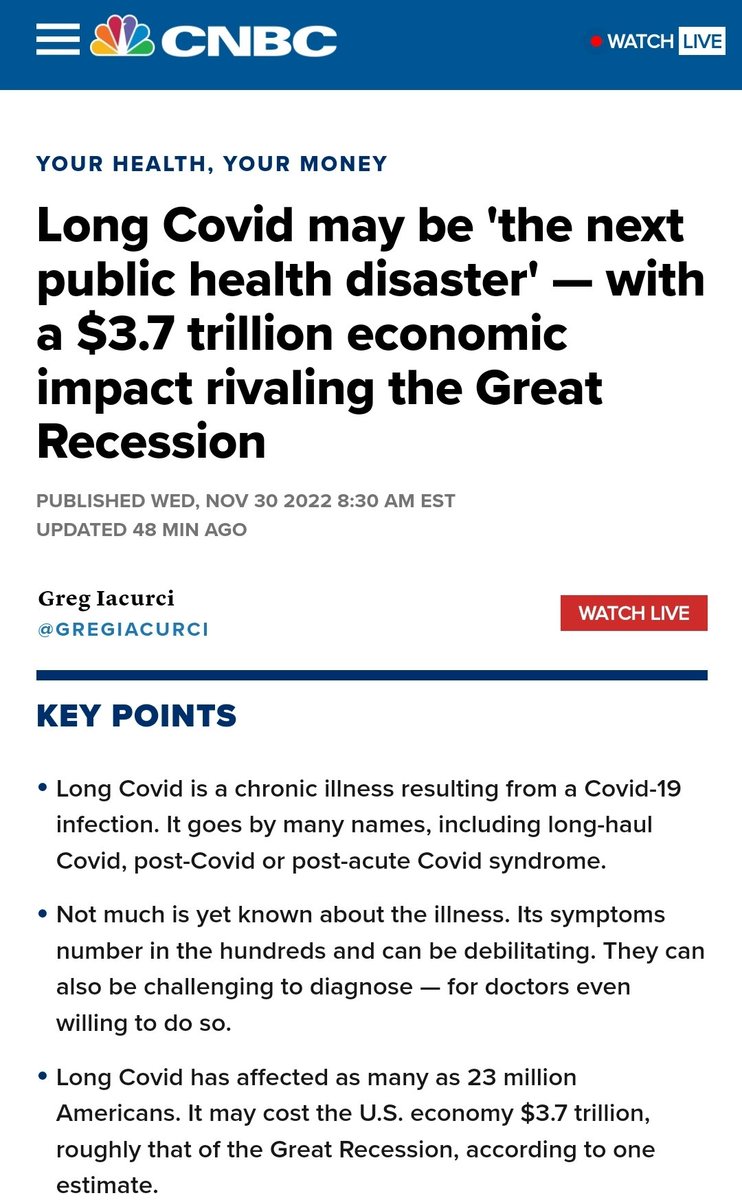 In Amerika snappen ze dat. Niks aan Long Covid doen maakt je economie langzaam maar gestaag kapot. Bij @MinVWS denken ze dat wegkijken het probleem oplost. Een Nederlands plan voor Long Covid onderzoek, of voor iets dat met Long Covid te maken heeft? Doen we hier niet. Amateurs
