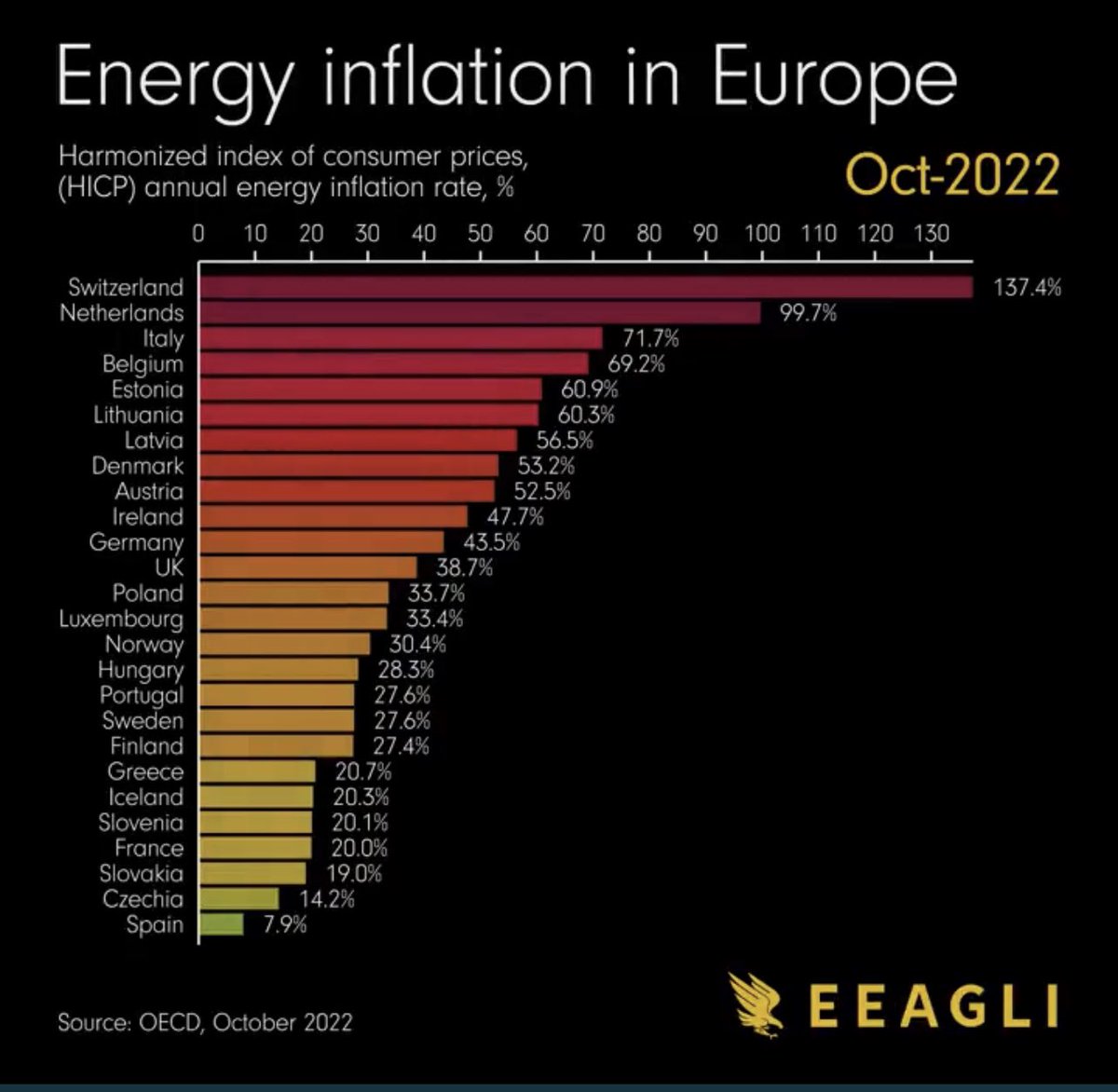4. Skyrocketing inflation in Europe -- from 10-22%. Food and energy prices are intolerable. Blackouts and electricity shortage are common now. And winter is coming.