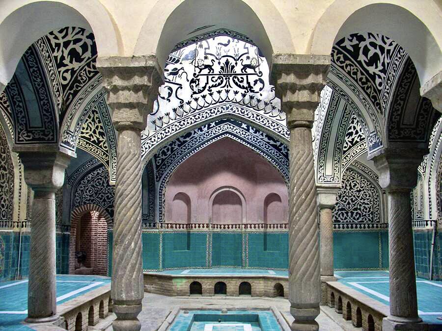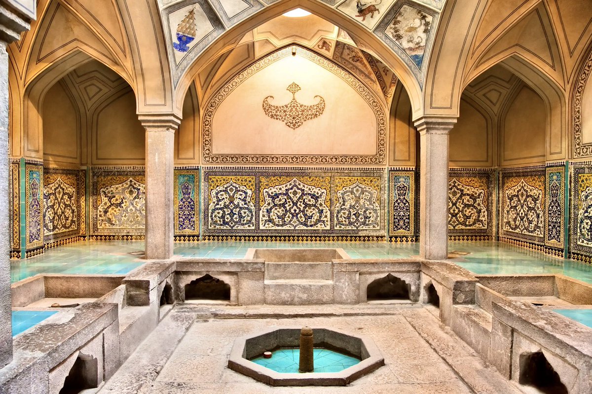 18/ Built in 1631, the Ganjali bathhouse is located in Ganjali Square. The entrance of the building is painted with ornaments of the Safavid era. A feature of the bathhouse’s architectural finish is that the sculptured stones of the ceiling are matched with those of the flooring