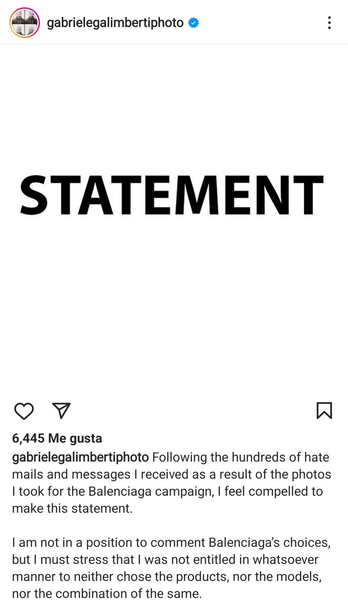 En un comunicado en su cuenta de Instagram, el fotógrafo dice que no tiene nada que ver con las fotos o elementos que hay en ellas, el solo "apretó el gatillo".