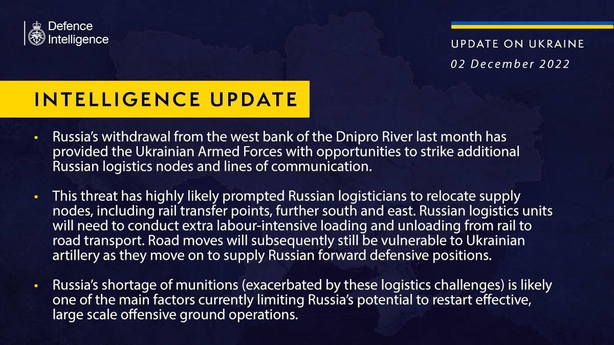 Russia's withdrawal from the west bank of the Dnipro River last month has provided the Ukrainian Armed Forces with opportunities to strike additional Russian logistics nodes and lines of communication.