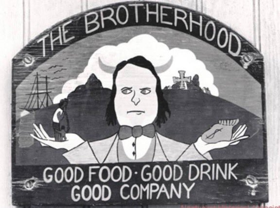 7/10 Now, the restaurant that Biden visited during his stay at Rubenstein’s home is very symbolic. It is called “The Brotherhood of Thieves” and the logo is of a minister portrayed as the devil. In one hand of the devil is a slave mother and child, in the other, a bag of money. twitter.com/i/web/status/1…
