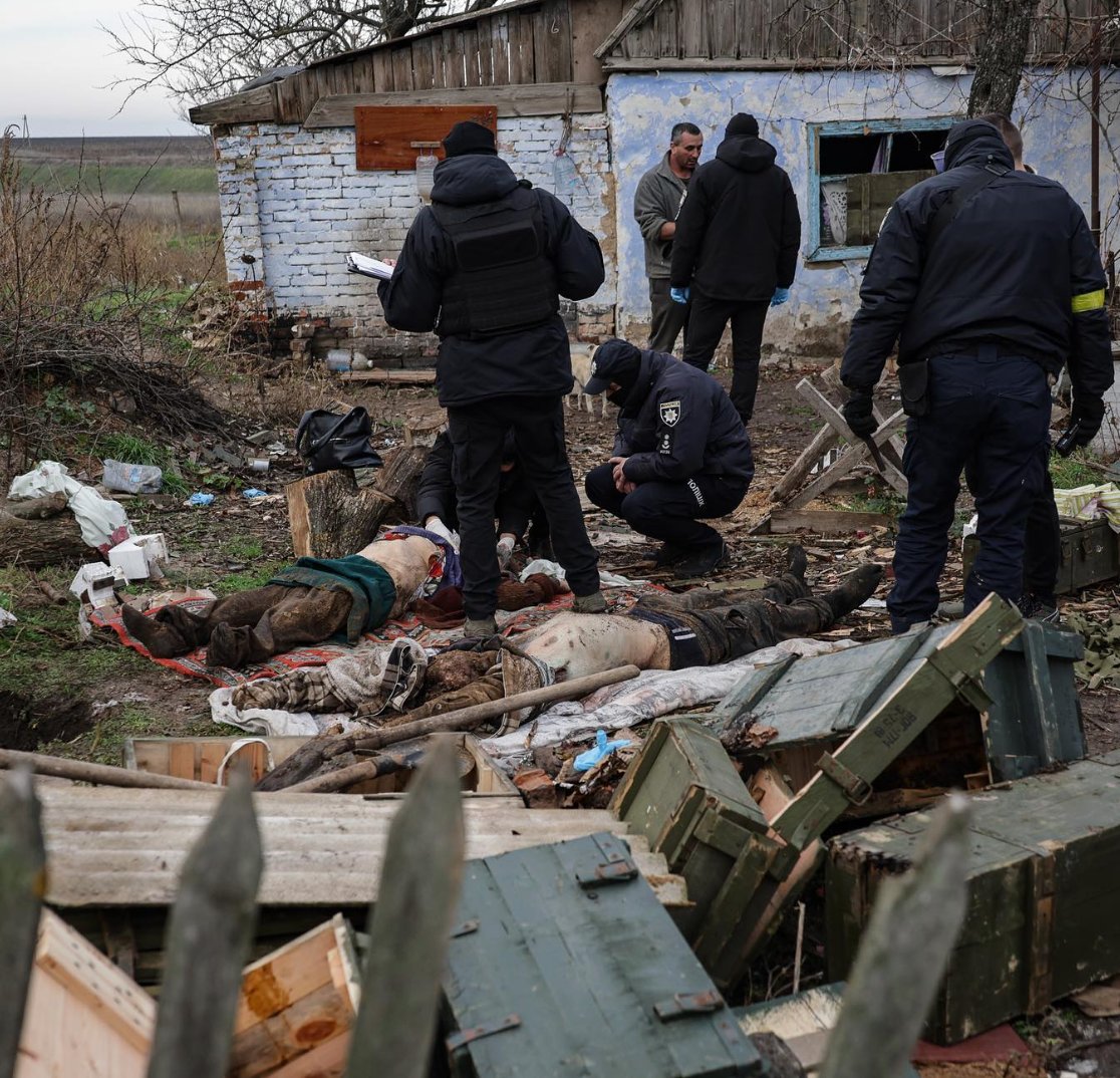 According to the Donbas Frontliner reporting project, two bodies of civilians were exhumed in the yard of a house where a unit of the Russian occupation forces lived in the village Lvivski Otruby in the liberated area of Kherson Oblast.