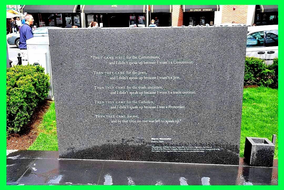 ΥΓ. στην εικόνα, η πλάκα με τη χαραγμένη φράση, βρίσκεται στο Μνημείο του Ολοκαυτώματος της Νέας Αγγλίας στη Βοστώνη