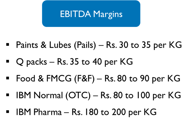 Food & FMCG is completely IML but in Paints and Lubricants there is a mix of IML and Non IML (HTL, Screen printing etc.)
