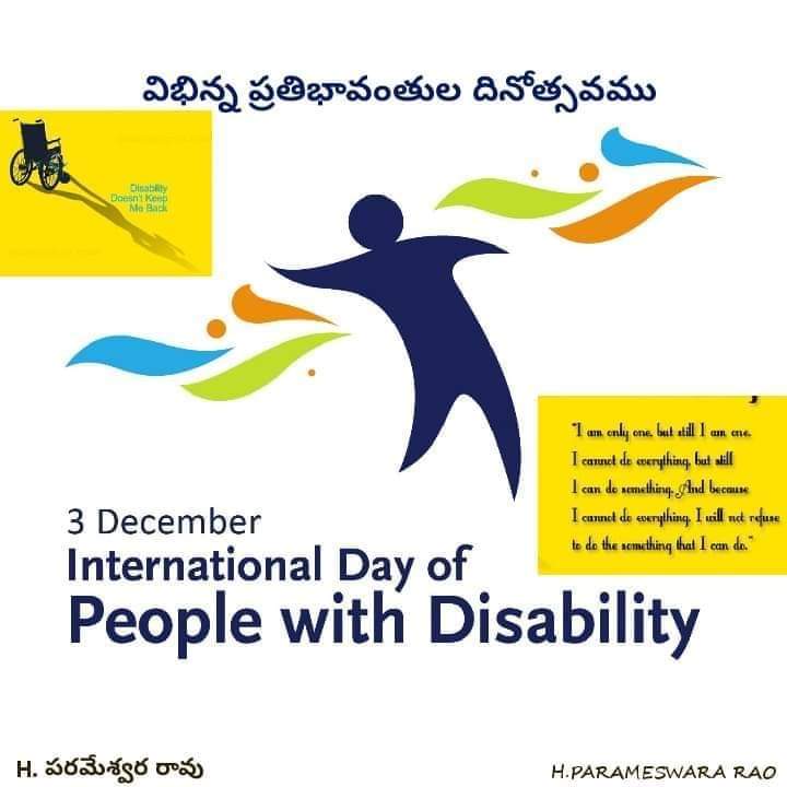 నిజానికి తాము వికలాంగులమన్న భావన తమకు ఇసుమంతైనా లేదంటున్నారు వారు. వాస్తవానికి అది వారి భావన కాదు.. ఆత్మవిశ్వాసం. నేటి సమాజంలో వికలాంగులు సాధారణ వికలాంగులేమీ కాదు.. విభిన్న ప్రతిభావంతులు కూడా.. #InternationalDayofPersonsWithDisability