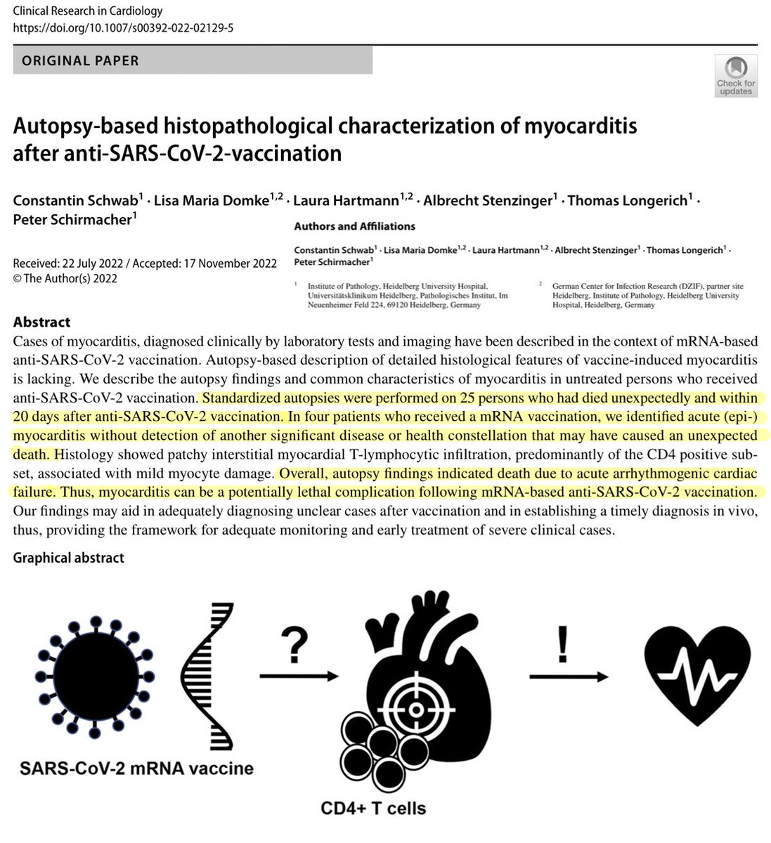 8/n Die Autoren führen aus, dass sie in den „vergangenen 20 Jahren an der Uniklinik Heidelberg keine (!) vergleichbaren Entzündungen im Herzmuskel gesehen haben“.