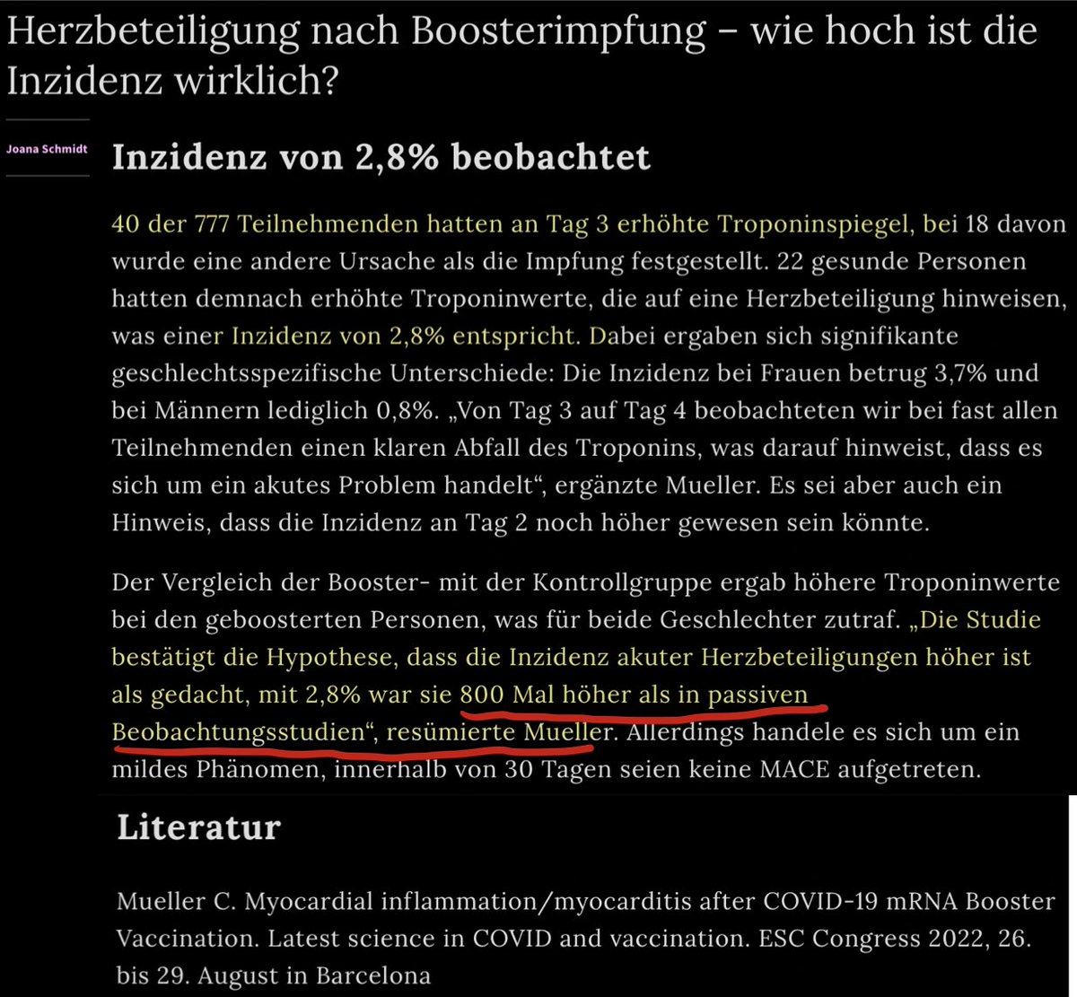 5/n Eine Studie der Uni Basel fand kürzlich bei knapp 3 von 100 (!) Mitarbeitern nach Booster einen Troponin-Anstieg als Zeichen einer Herzmuskelschädigung - und damit rund 800x häufiger als in den rein passiven Beobachtungsstudien.