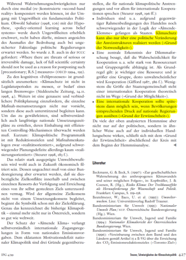 Sowohl Klimapolitik als auch meine berufliche Beschäftigung damit haben harmlos begonnen. In den 1990er Jahren dachte man noch, wir haben viel Zeit (bis 2100) den „Klimawandel“ einzudämmen und das werde langsam aber sicher gut gehen, so wie immer bisher... 2/