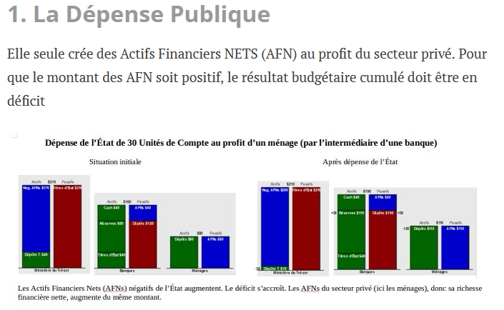 Certains économistes, qui manifestement ne connaissent pas, ou bien souhaitent ignorer, l'identité comptable des soldes sectoriels, affirment que la dépense publique est financée par l'épargne privée, alors que celle-ci ne peut être que créée par la dépense publique, ...