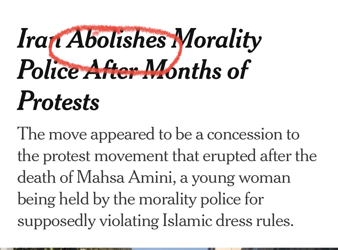 So amazing how many news outlets are going with the "Iran abolishes morality police" line based on a convoluted quote from one official. In reality morality police have been inactive since protests started, but there is no substantive news on their future.