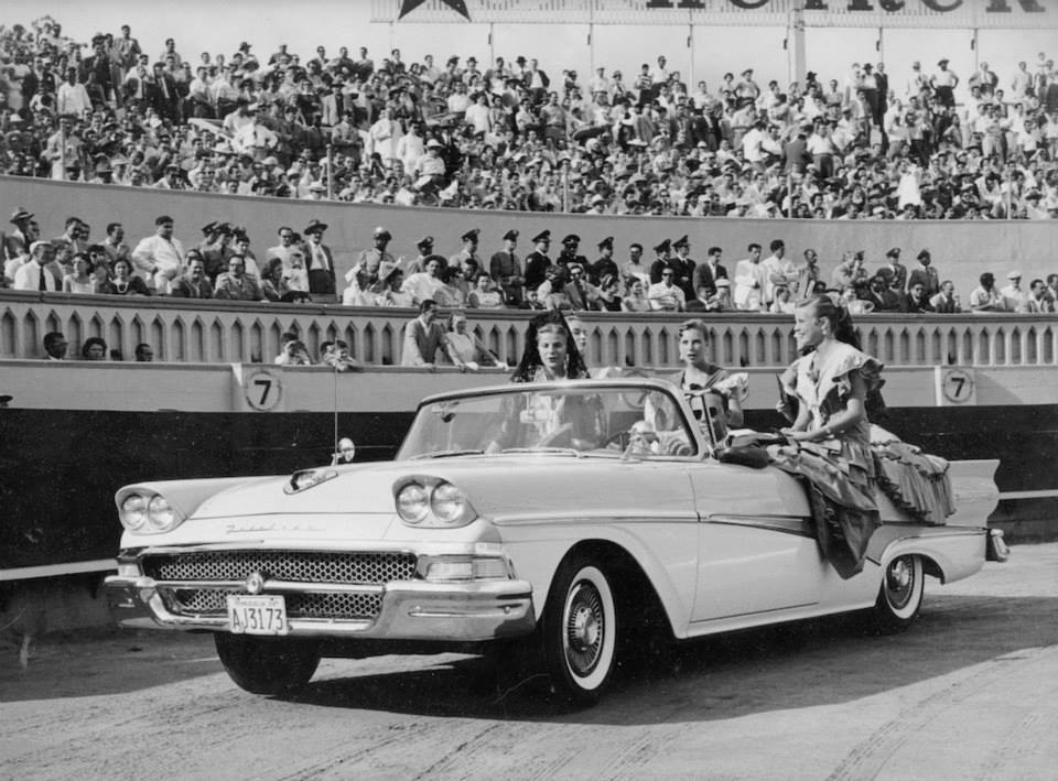 *OK, not me, I don't have that kind of pull with the señoritas. This 1958 Ford Fairlane 500 Sunliner convertible is parading 3 beauties around the Plaza de Toros in Caracas, Venezuela sometime in 1958.