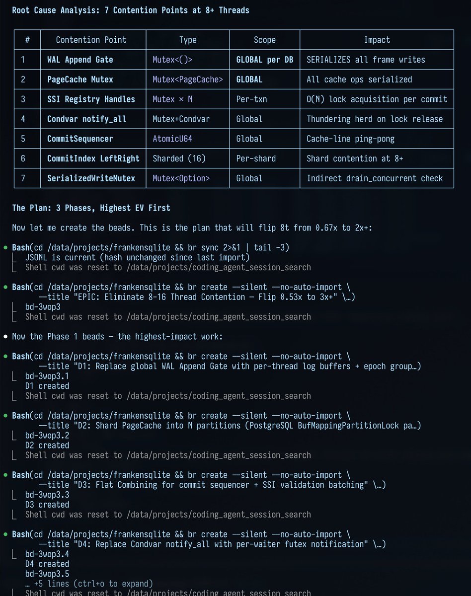 Making some serious performance strides on FrankenSQLite in the case of multiple concurrent writers.