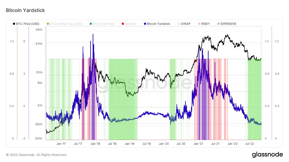 Dynamic Range NVT, the Bitcoin "PE Ratio", is once again in the green zone. This tells us the network is priced cheap versus the transaction value flowing through on-chain. My guess is we probably wouldn't be here if it wasn't for the FTX fraud, but somewhere in the mid-$20s.