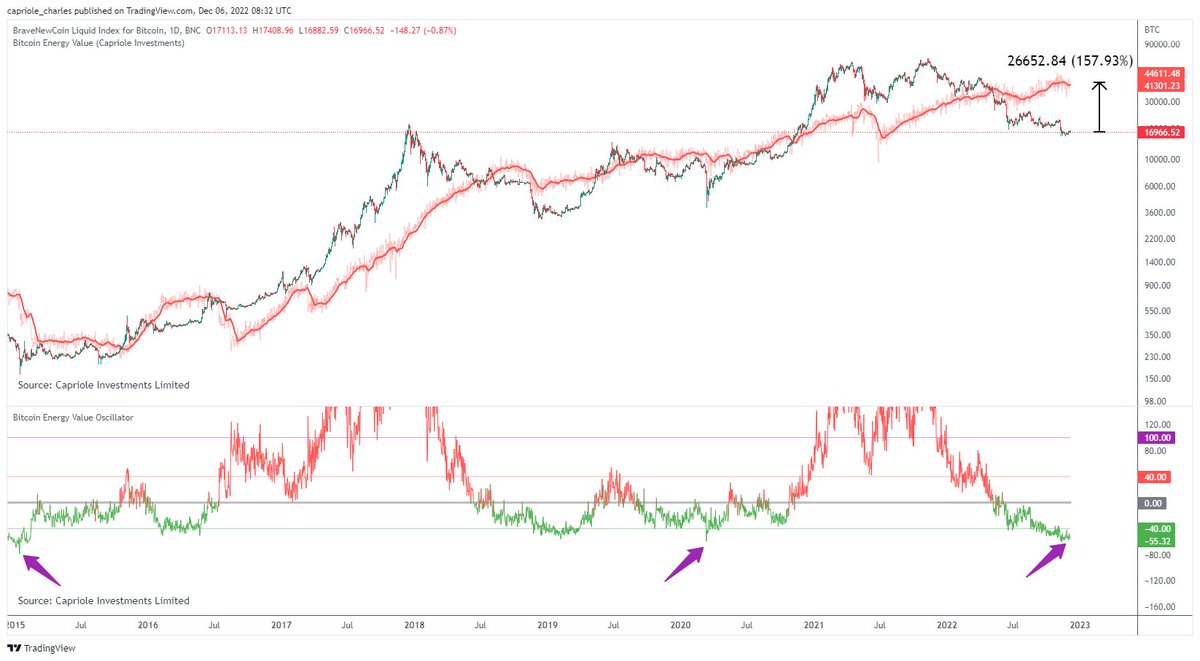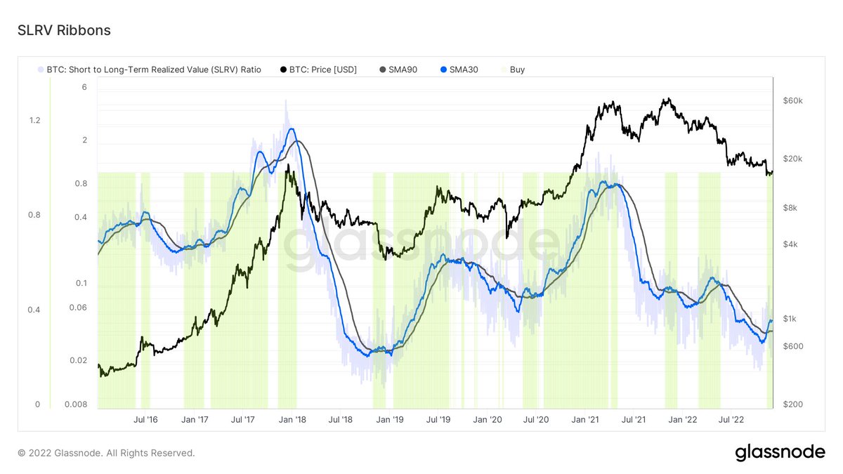 The SLRV Ribbons finally crossed bullish at $16.6K. This was one of the last major on-chain metric to flip bullish at the lows. You can read more about this strategy and how it beats buy-and-hold here: medium.com/capriole/slrv-…