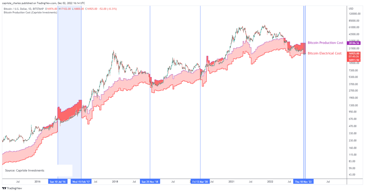 There have been only 4 periods ever of price below global Bitcoin Electrical Cost. A price point which has been a historical floor for Bitcoin. All looked like incredible buys in hindsight. You wanted to buy below electrical cost? We had a month there and now it's gone.