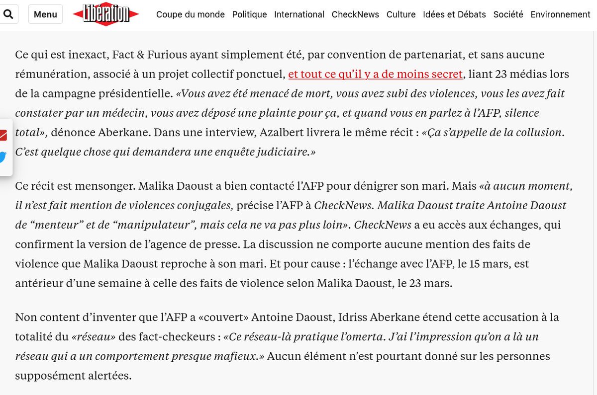 Et il me semble que sur la question des violences conjugales, cette position, prudente, a été très répandue dans les réactions de twittos (celles et ceux que je lis, impliqués dans la lutte contre la désinformation) et les articles que j'ai lus (dans Libé, l'Express, etc.)