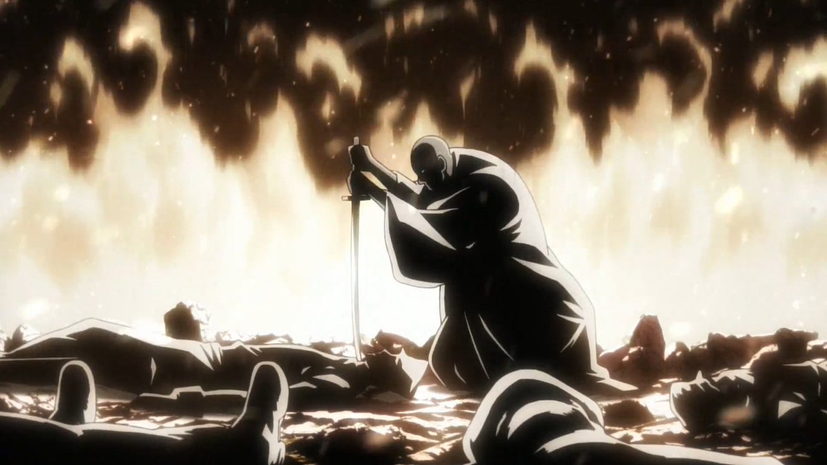Every step/swing the man takes, a Quincy burns to ash, as that is how life is to him back then #BleachVincent
