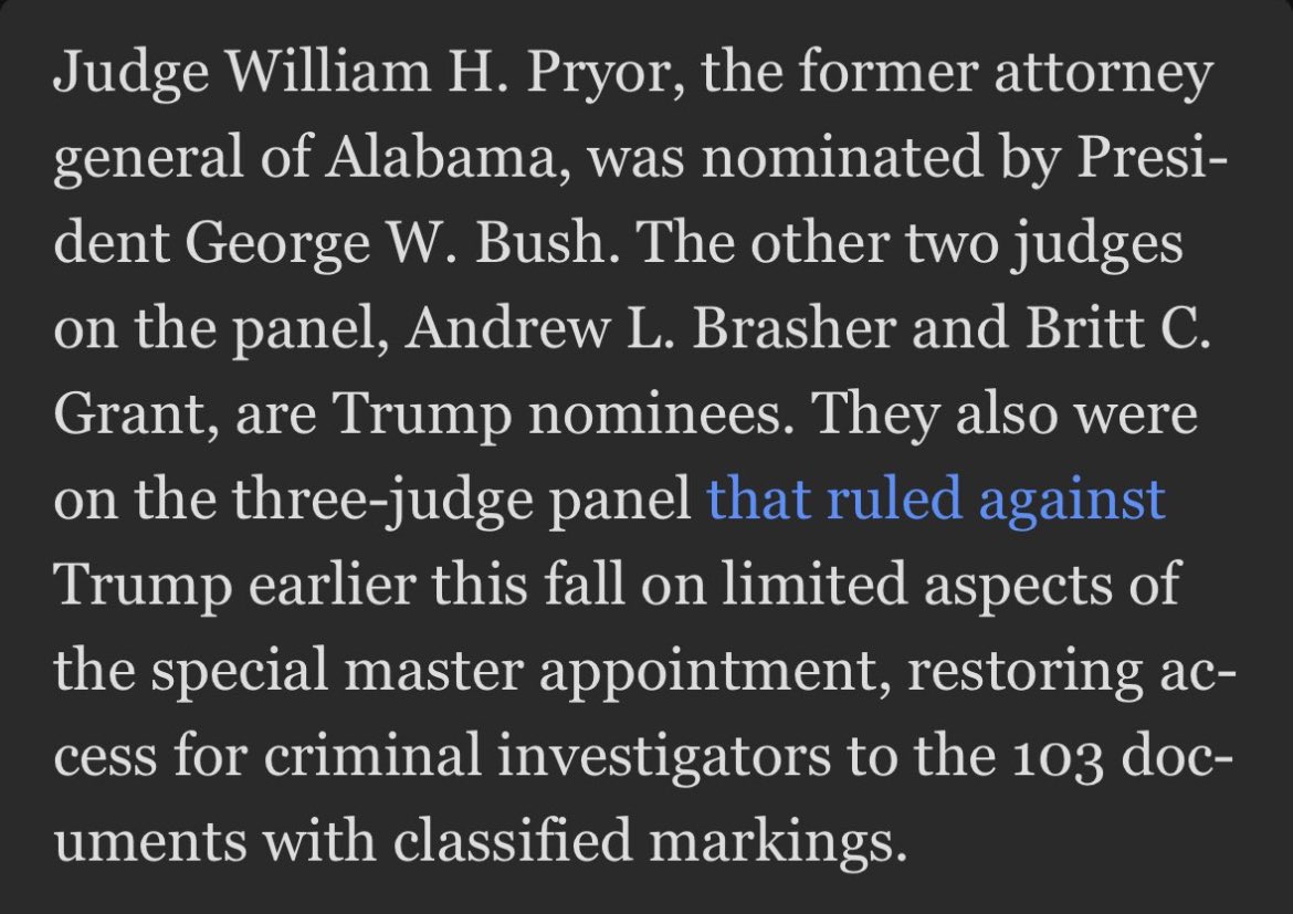And for MAGA screaming about “liberal activist judges” on the 11th Circuit, this was a panel of three judges, all Republican-appointed. One appointed by George W. Bush. The other two by, wait for it, yep you guessed it, Donald Trump himself.